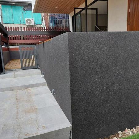 เป็นโปรเจคบ้านพักส่วนตัวของคุณพีท ท่ีวงเวียนใหญ่ กรุงเทพมหานคร โดยเเรกเริ่มการออกแบบของบ้านคุณพีทน้ี ทางผู้ออกแบบได้มีการเลือกใช้งานเป็นวัสดุหินแกรนิตจริงเอาไว้เเล้ว เเต่เนื่องจากปัญหาของน้ำหนักของหินแกรนิตจริงเเละราคาท่ีค่อนข้างสูงมาก ทางคุณพีทจึงได้ไห้ผู้ออกแบบได้ทำการปรับเปลี่ยนมาใช้งานวัสดุทดเเทนหินแกรนิตจริง เเละทางผู้ออกแบบจึงได้ทำการลงสเปคเป็นสีพ่นเทกเจอร์แบรนด์อื่นไว้ แต่ทางคุณพีทได้เห็นเเบรนด์นั้นเเล้วยังมีความกังวลในเรื่องของการใช้งานเเเละเทกเจอร์เเละสีซึ่งยังไม่ถูกใจ จึงทำให้ คุณพีท เริ่มท่ีจะหาข้อมุลเรื่องของสีพ่นเทกเจอร์ด้วยตัวเอง เเละได้มาพบสีของเราผ่านช่องทางโซเชี่ยล จึงได้ติดต่อเข้ามาเพื่อสอบถามข้อมูล เมื่อทางบริษัทได้รับเเจ้งข้อมูลเเล้ว ก็ถูกส่งต่อมาท่ีฝ่ายขาย ทางเราได้ติดต่อกลับเเละให้ข้อมูลเพิ่มเติมกับคุณพีทในทันทีค่ะ เเละเพื่อสร้างความเช่ือมั่นให้กับคุณพีทด้วยการเข้าพบเเละลงพื้นท่ีหน้างานจริง ขยายความต้องการของคุณพีทให้มากข้ึน ทำให้คุณพีทเริ่มประทับใจในการบริการของเราเป็นอย่างมาก ทางเรารับทราบถึงความต้องการเเละจุดประสงค์ของคุณพีทเเล้ว จึงได้ติดต่อไปยังผู้ออกแบบท่ีทำการออกแบบบ้านของคุณพีทเเละทำตัวอย่างสีพ่นเพื่อส่งให้ผู้ออกแบบทำการรีเชคดีไซน์ เพื่อให้บ้านออกมาสวยเเละสมบูรณ์ท่ีสุดค่ะ ทำให้ผู้ออกแบบเกิดความประทับใจด้วยอีกท่าน